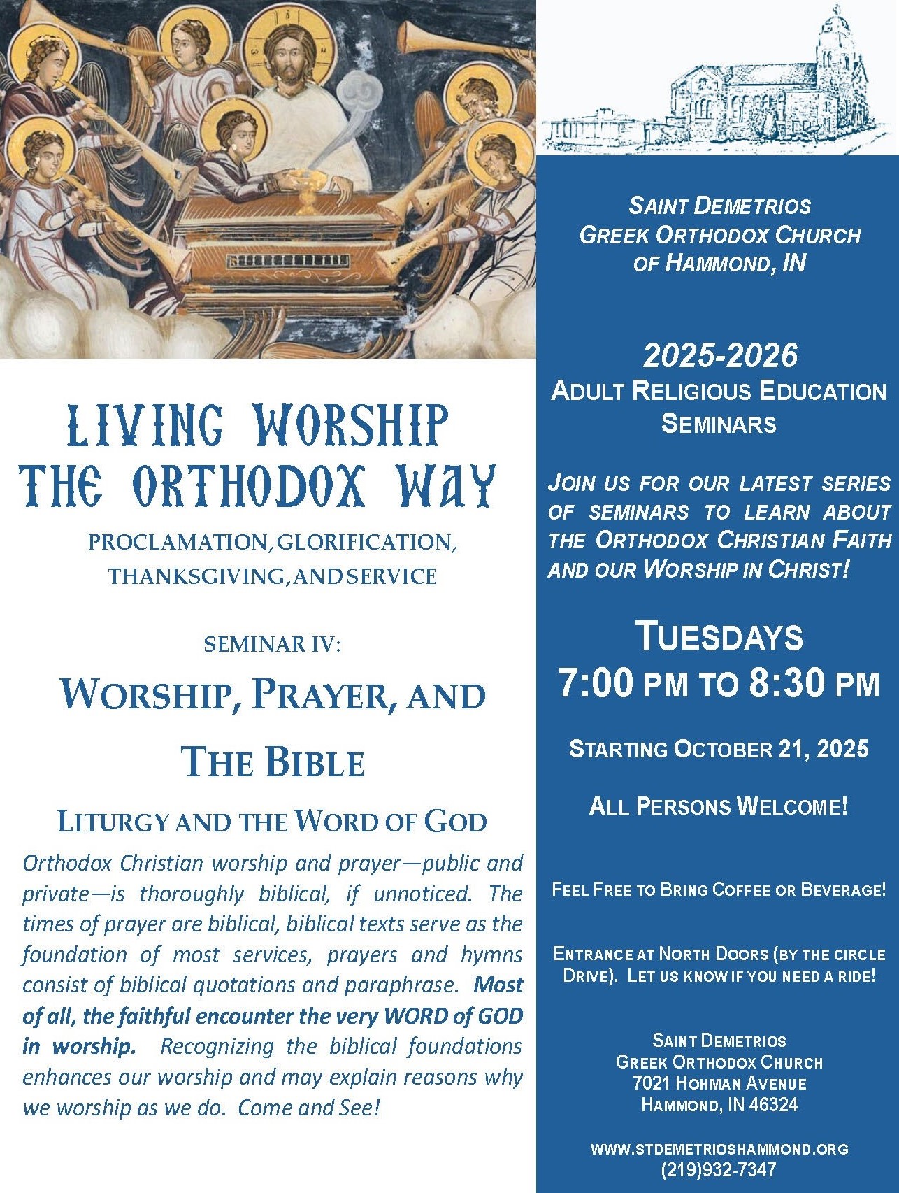 Weekday Feasts (when scheduled): Orthros (Matins): 8:30 AM | followed immediately by the Divine Liturgy (approximately 9:15-9:30 AM)